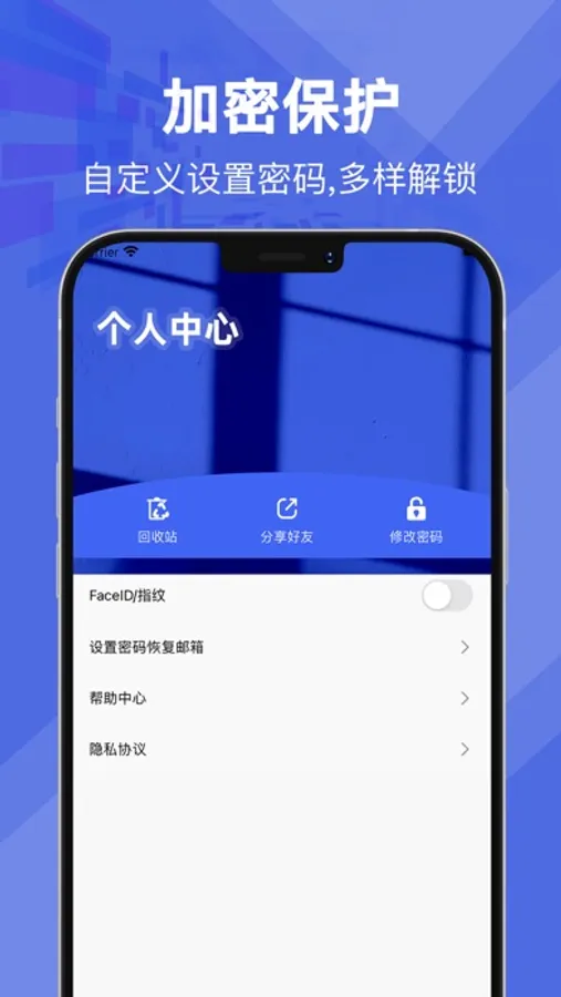 - 自定义相册密码,多种解锁方式随意选择