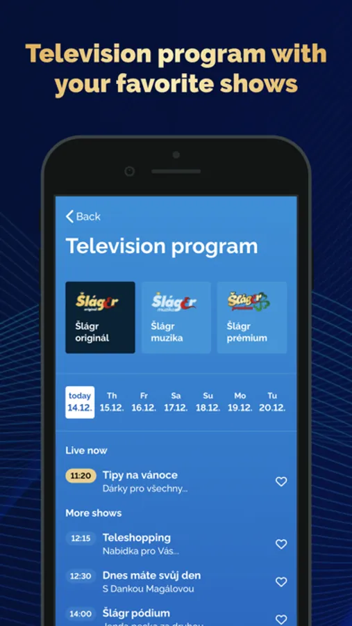If you like to watch Šlágr TV, you can now mark your favourite shows in the app tv programme and the app will alert you 10 minutes before they start.