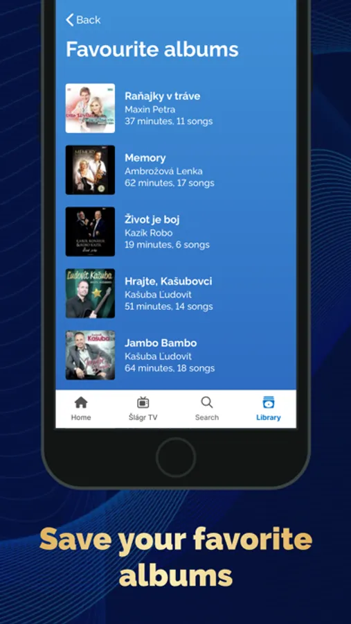 Access to a rich library of your favourite songs is what's new in the latest version of the Šlágr TV app. You can now mark your favourite artists, albums and songs with a heart and you'll have the easiest access to them - just one click away.