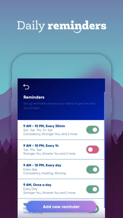 Set daily reminders that will keep you on the road to victory, every day, one step at a time. Leave nothing to chance.
