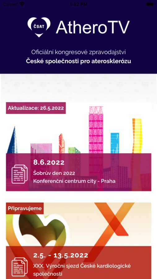 Kongresové digitální zpravodajství AtheroTV vám přináší v novém inovativním formátu záznamy toho nejdůležitějšího z kongresů a dalších akcí České společnosti pro aterosklerózu. V aplikaci postupně přibývají rozhovory i ostatní příspěvky, reflektující velkou část programu akcí.