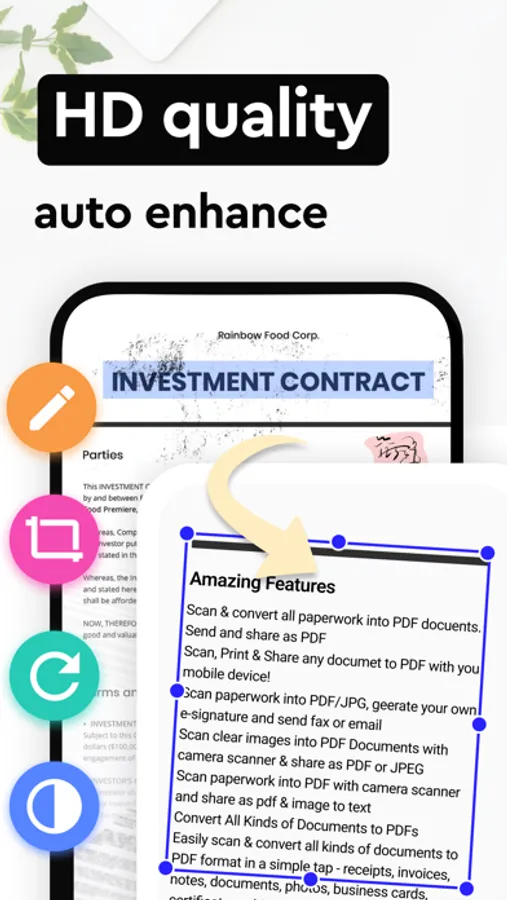 • Whether it’s a PDF or photo scan, you can preview,manual sorting,markup,resize,crop,rotate,and adjust color.
