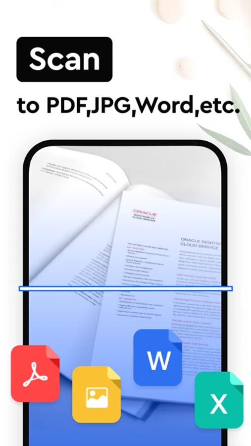 PDF Scanner,a smart scanner app turns your device into a powerful portable scanner,can easily convert paper documents and images to PDF/JPG,that recognizes text automatically (OCR) and allows you to save to multiple files formats including PDF and JPEG.Camera PDF Scanner is most intelligent scanner app. Scan anything — books,receipts,ppt,notes,documents,photos,business cards,whiteboards,contract in high quality.And convert scan paperwork into PDF or JPEG format by using the free document scanner app.