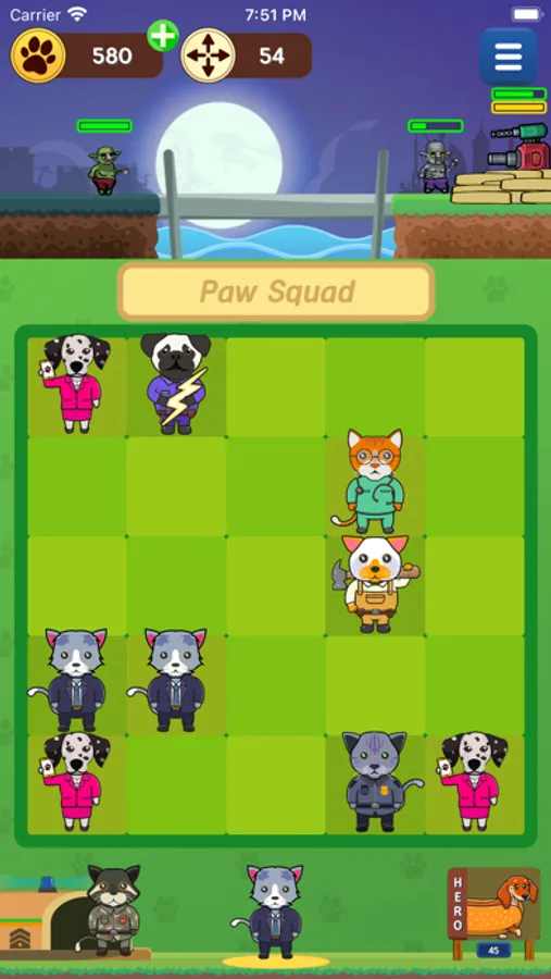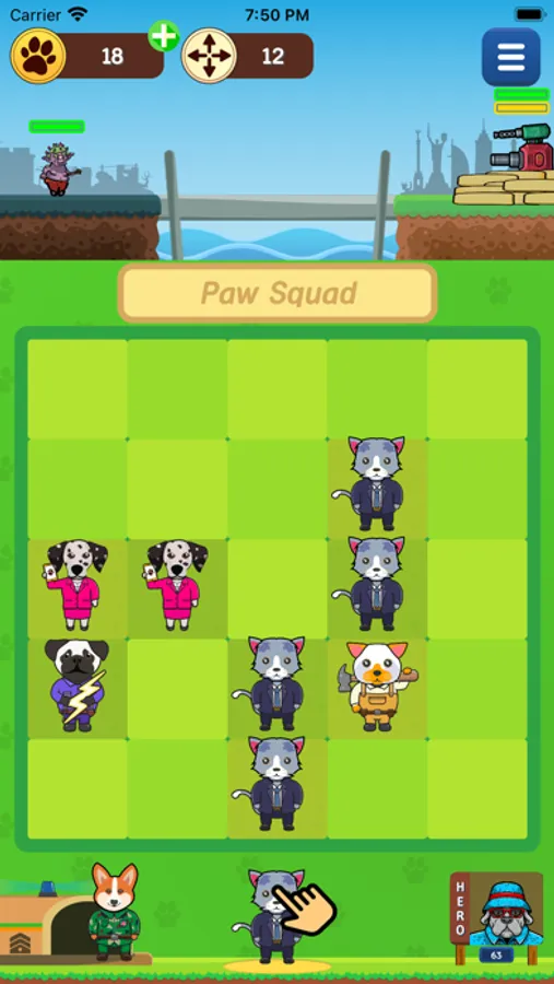 Each new character placed on the battlefield gives you some amount of Paw Coins. Use them to purchase Support Units or Heroes. Any of them may help you a lot!