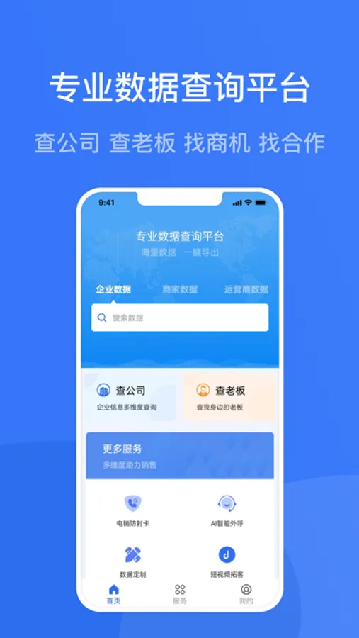 蓝眼查是一款专业的客源信息查询工具,包括企业数据、商家数据、运营商数据,覆盖全国超过2.5亿家社会实体信息(含已注销、港澳台),数据均源于公开信息、裁判文书网等国家权威网站公开公示信息,数据导出无限制。