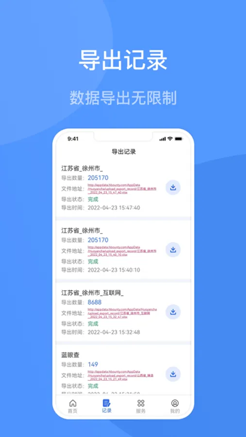 千万级数据,几十种查询条件,一键筛选目标客户,支持批量导出到EXCEL