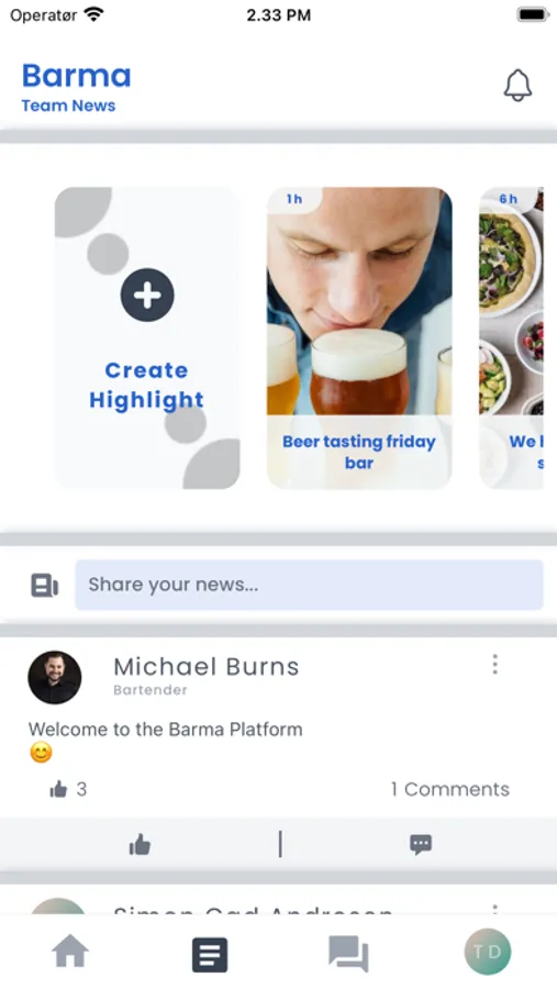 With the Barma workspace app, you are able to communicate with your team via messenger and a newsfeed. You can also complete day to day tasks within the platform and have an all in one solution for your everyday hospitality needs.