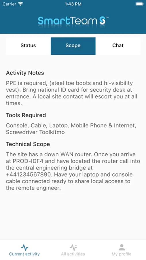 - Real time updates - real-time status updates and in app collaboration between the field engineer and all customer stakeholders (project manager, site contact, central engineer, delivery manager) increases logistical efficiency, ensuring any misunderstandings are avoided and time sensitive information is shared automatically