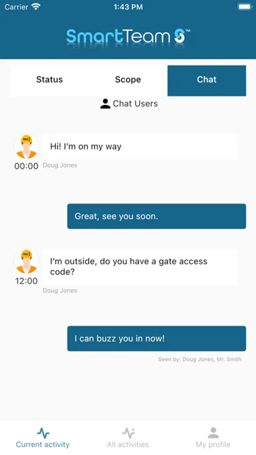 - Live chat – allows the field engineer and customer (and all project stakeholders) to communicate in real time