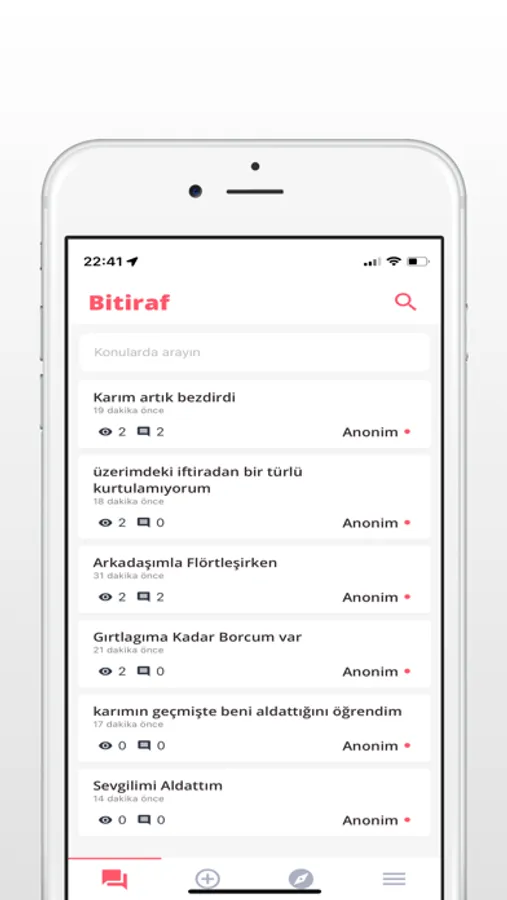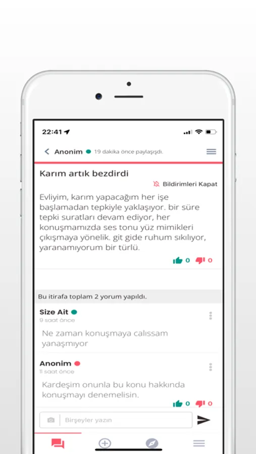 Aklından geçen her şeyi anonim olarak diger insanlar ile paylaşabilir itiraf edebilirsin veya itiraflara anonim olarak yorum yaparak dertlerine çare bulabilirsin. Bu platformda kurallar dahilinde tamamen özgürsün.