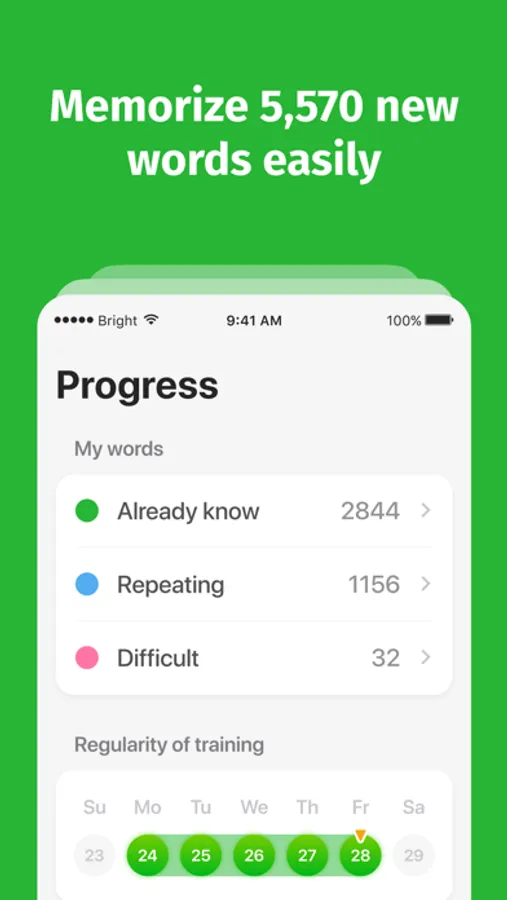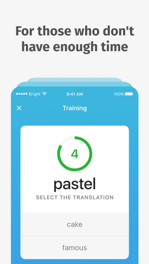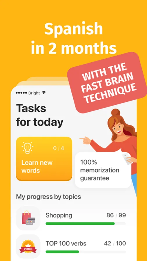 Memorize 5570 the most necessary Spanish words in just 10 minutes a day! Scientifically proven learning method and a smart training system in the Bright app.