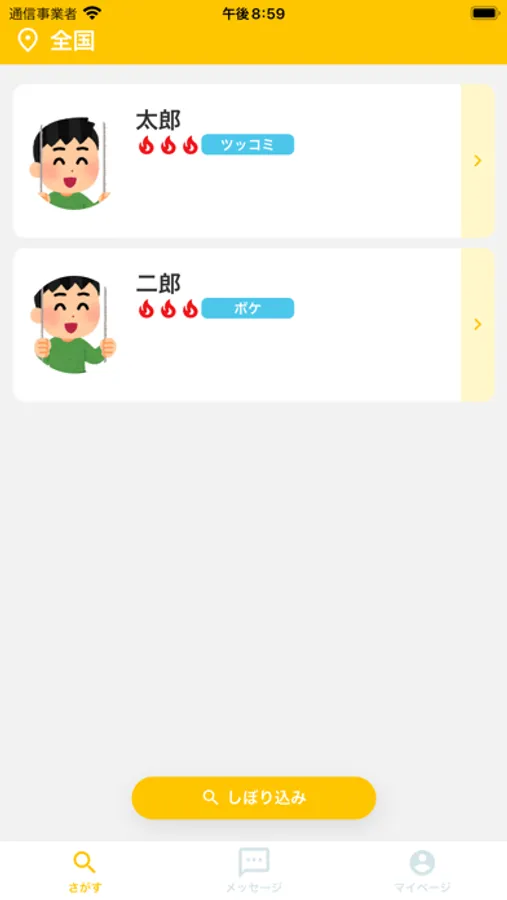 希望の条件に合うユーザーが見つけやすいように絞り込み機能を提供しています。