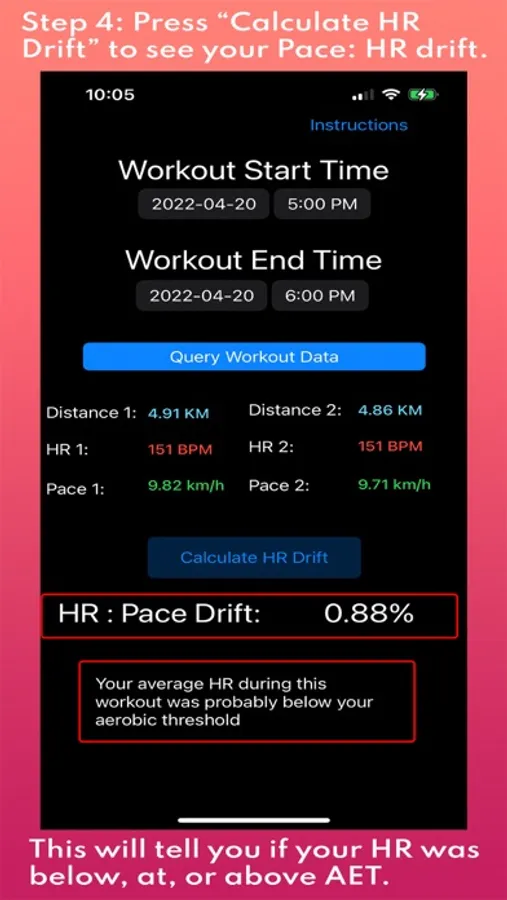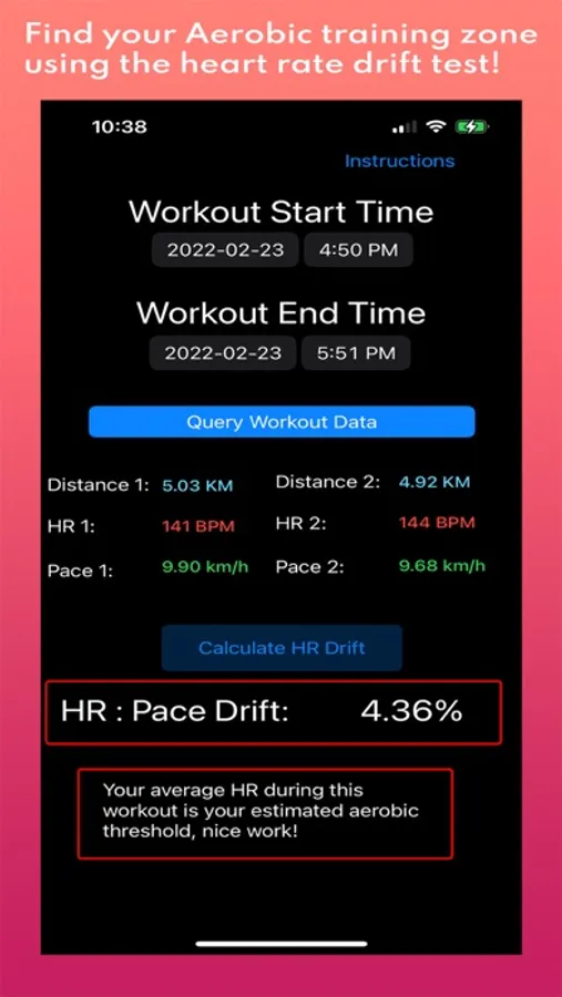 6. If your HR drift is between 4.5% - 5.0%, you have successfully found your aerobic heart rate.