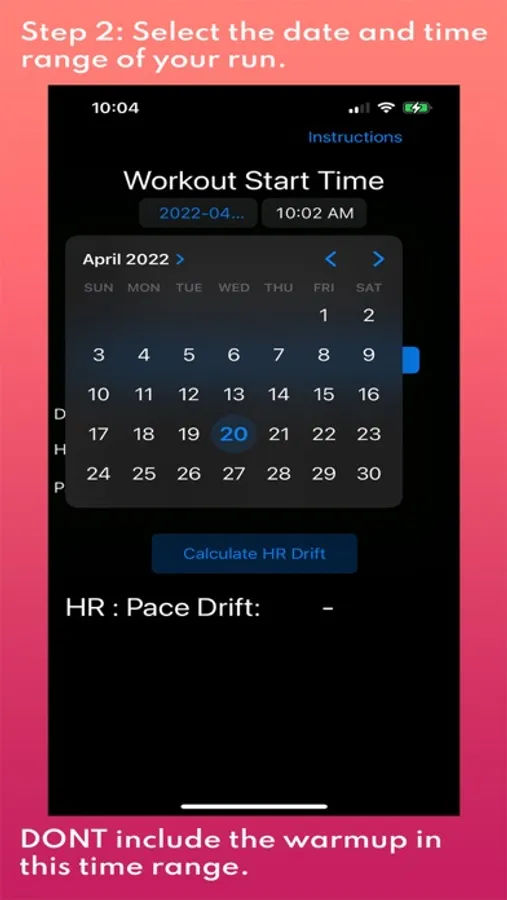 i) Example: You start your run at 5:00pm, warmup for 15 minutes, run for an hour, then cooldown for 15 minutes. Your whole workout lasted from 5:00pm - 6:30pm, but you would input 5:15pm - 6:15pm.