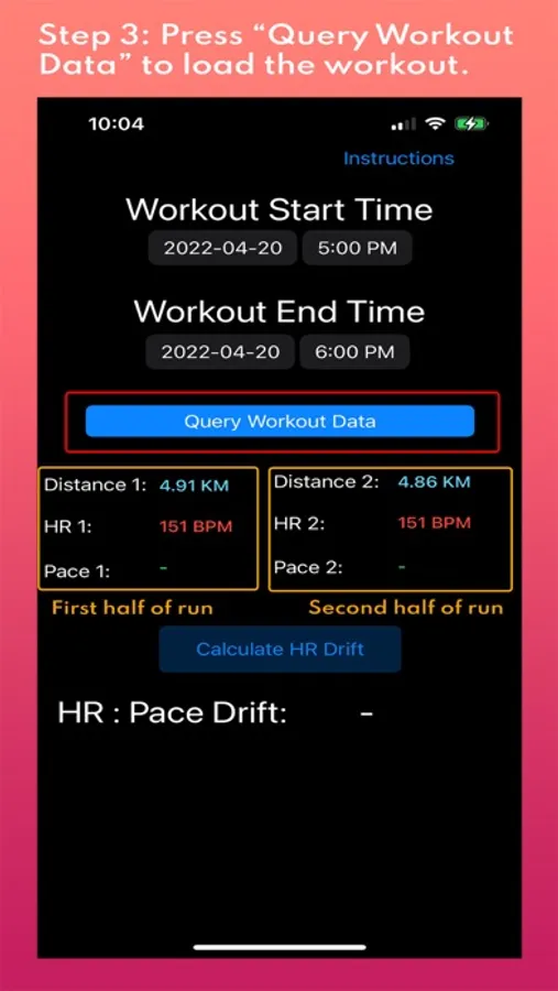 5. Press “Query Workout Data”