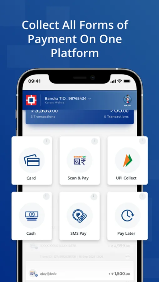 1) Accept payments from all modes seamlessly UPI, SMS Pay, and QR.