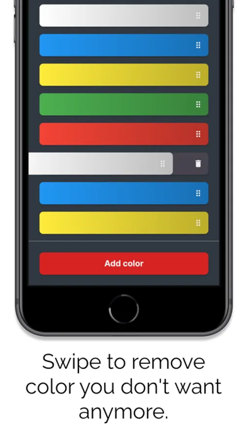 How to start the lightshow? It’s very simple, add color to the list. Add as many colors you like. You can set the order of every color in the list. When you are done, press the play button. The lightshow will start. The phone will be switching the color of the light, simulating the strobe disco lights. Just enjoy listening to the music during your rave!