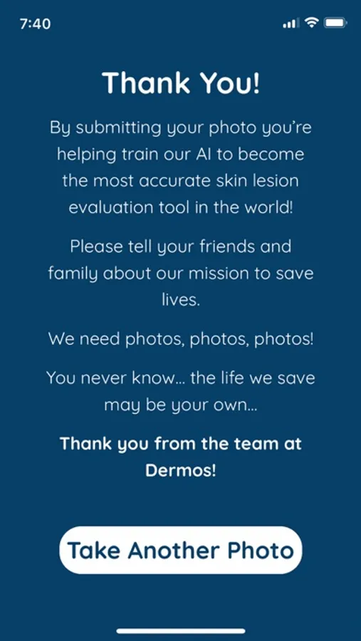 Help us save lives first by collecting photos! In the first version of our app, we’re collecting photos of skin lesions to help train our AI to be the most accurate in the world. Help us save lives by submitting your photo now!