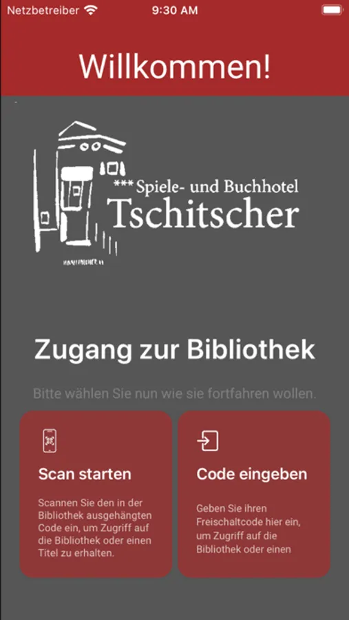 Der Scan des QR Codes in unserer Bibliothek entsperrt die App für Ihren Aufenthalt. Sollte der QR Code zu früh ablaufen, scannen Sie bitte den neuen QR Code in unserer Bibliothek.