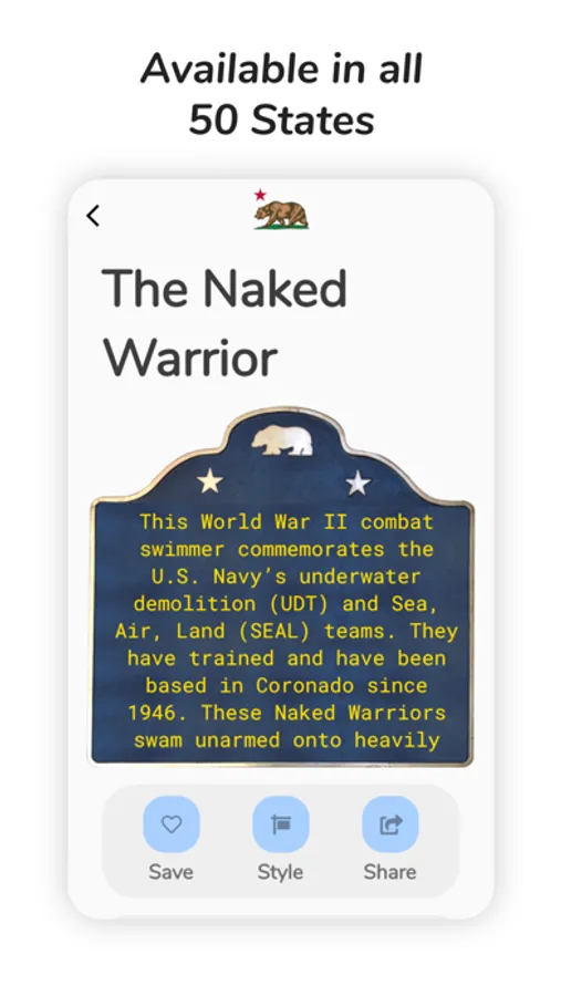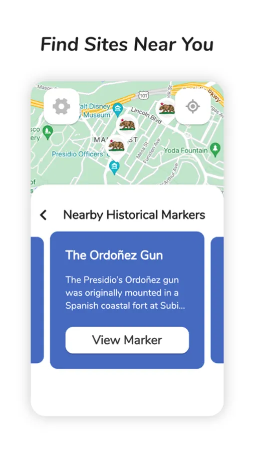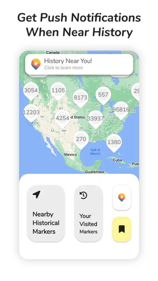 ■ Receive GPS based push notifications when near a historical site. Now when you walk, bike, or drive past major historical events, your phone will ping you, and then you can read about it in the app.