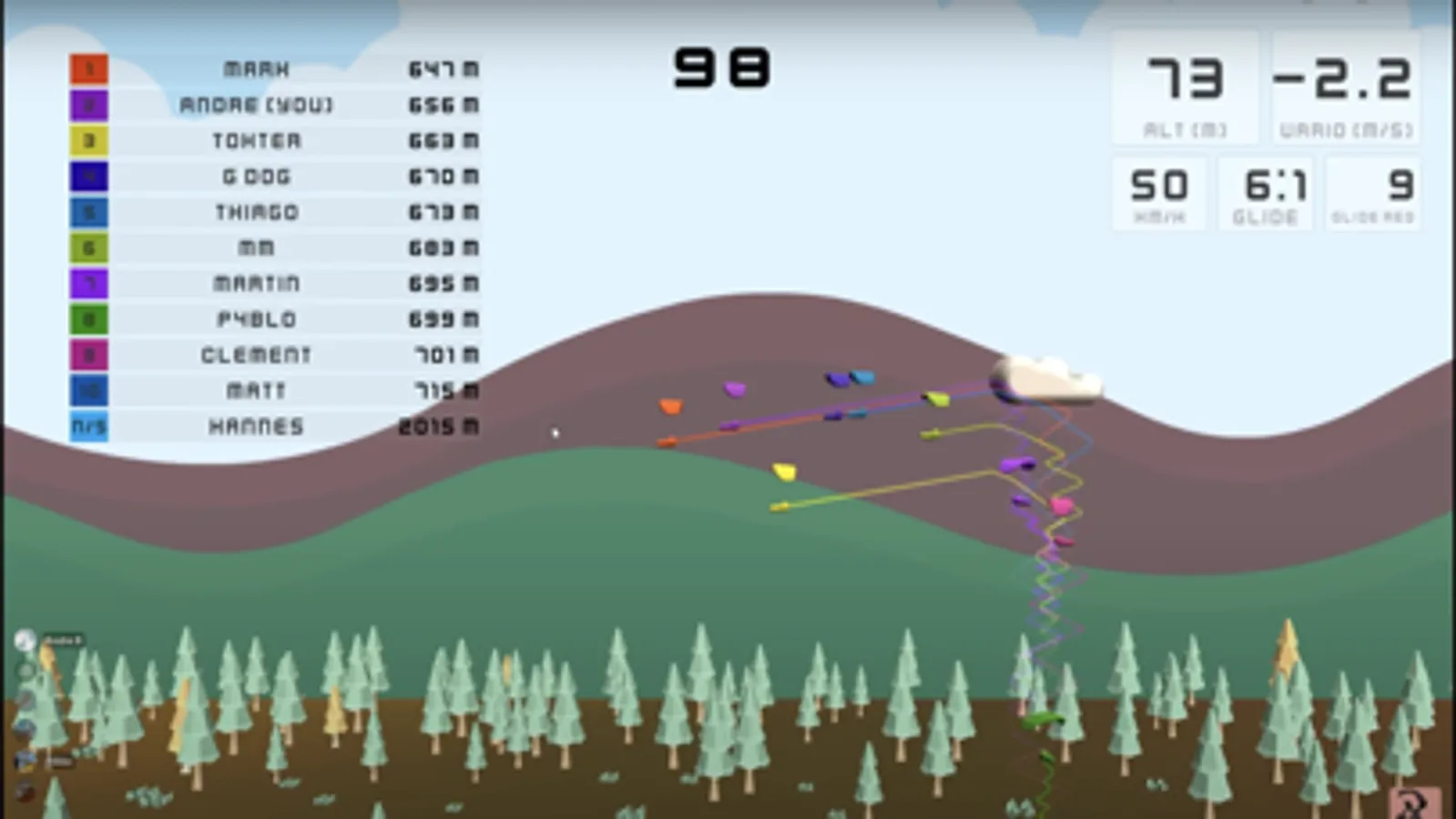 Speed to Fly sees players racing paragliders against eachother to arrive in goal first!