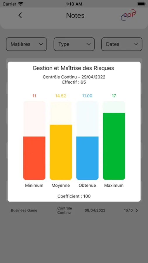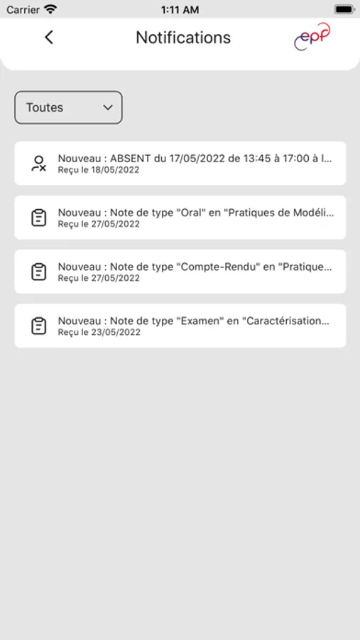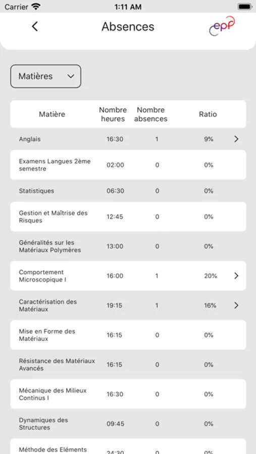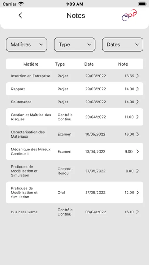 L'application mobile de l'EPF permet aux étudiants de l’école d’ingénieur-e-s de se connecter à leur profil EPF afin de consulter :