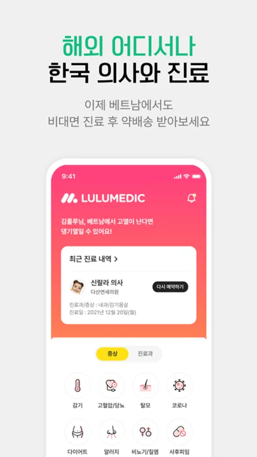 - 어플리케이션 추가 설치 없이 룰루메딕 앱에서 해외 비대면 진료를 만나세요!