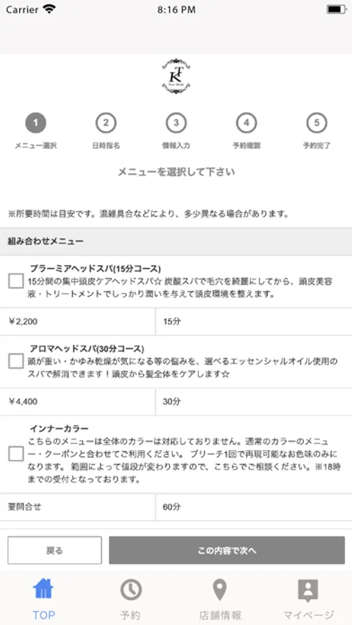 予約状況の確認やキャンセルがマイページ上から行えます。スタッフの登録が出来るので前もって担当者を登録しておけばマイページからスムーズな指名予約が可能です。