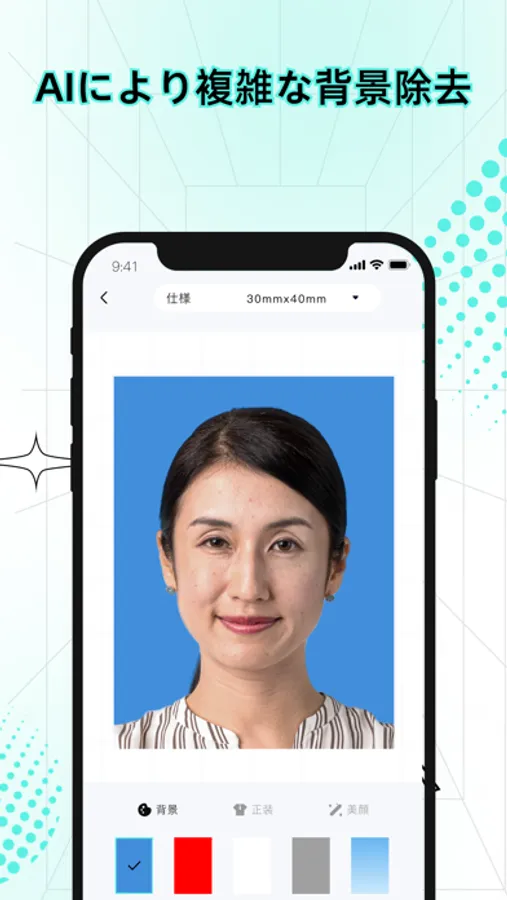 この「AI証明写真」アプリケーションを使用すると、履歴書、運転免許証、マイナンバー、パスポート、資格試験、証書申請などのしょうめいしゃしん をいつでもどこでも簡単に撮れる!広告なし、登録なし、標準の証明写真を30秒で素早く作成、自宅でも使用できるプロの証明写真アプリ!