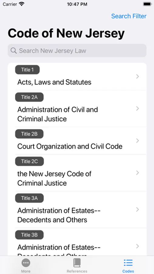 Convenience is crucial. Whether a law enforcement officer or a professional in the field of law, we have simplified the New Jersey state statutes for easy use. We not only made the process of navigating through these laws more intuitive, but have added more functionality to enhance your interaction with said laws. Currently, all codes are alphanumeric searchable, which can be further adjusted via filtering to fit your searching needs. Other conveniences have been added in various ways, such as offering common warnings and bookmarking functionalities. All state statutes can be fully accessed offline.