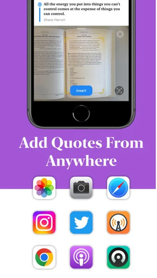 Quotify saves all of the quotes that you see and hear in one place. It helps you easily re-read the quotes you save, unlike other apps or the good old fashion highlighter method. Quotify brings your quotes to you without you needing to think about it — its widgets help with quote recall by putting your favorite quotes front and center on your home and lock screen, ready and waiting to inspire you.