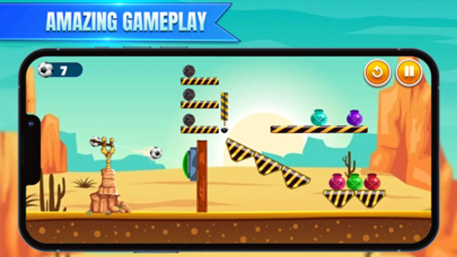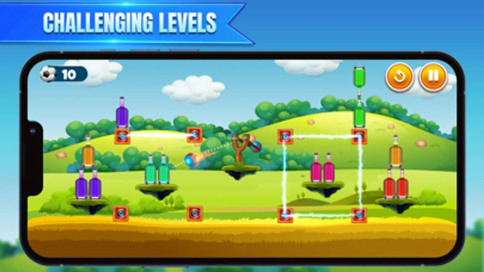 With the all new graphics and satisfying gameplay Bottle Shooter is unique Catapult game to play. It could be fun where your skills meets our difficulties in the levels. Let's see how far you can go in this mystery. Score perfect 3 star in each level and prove yourself a genius. Play this slingshot game and show your skills.