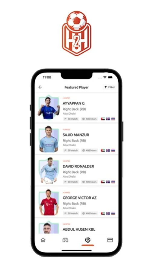 H2H is foodball game App. Players in local city can create a team. Team can recruit player for their team. User can get all latest news regarding football