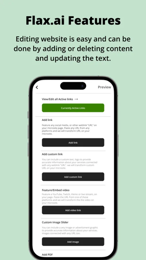 Flax.ai is a cloud-based micro website development platform that allows users to create and customize professional-grade mini-websites without the need for coding skills. Flax offers a wide range of tools and features, including multiple themes, layout customization, free subdomain, and much more. Flax provides hosting and domain services, as well as marketing and Analytics tools to help users promote their websites. It is widely used by individuals, small businesses, and organizations to create mini-websites for a variety of purposes, including Link In Bio, landing page, one pager, portfolios, or simply embed your site to our dynamic QR or RFID based product