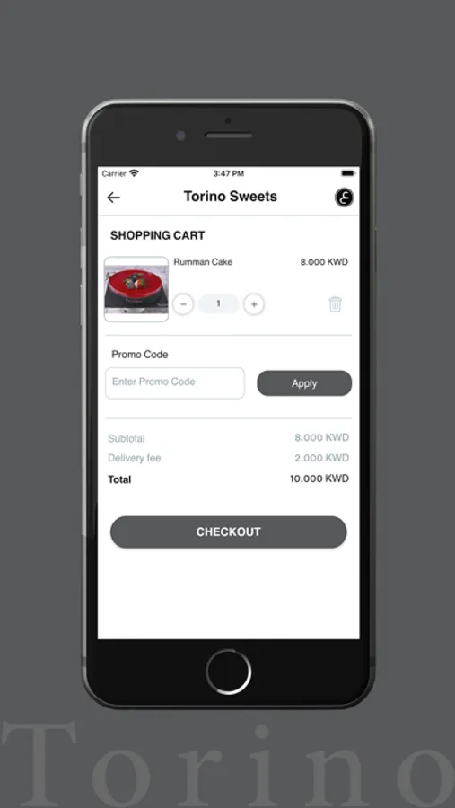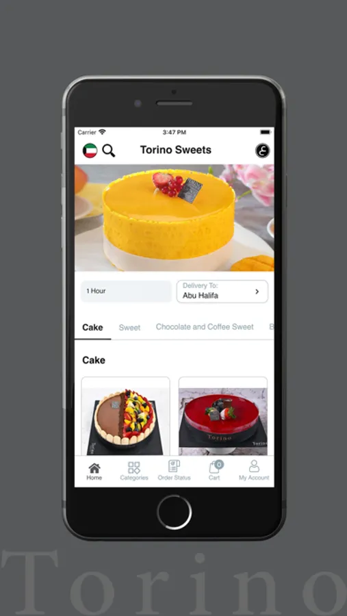 تطبيق حلويات تورينو يسهل عليك عملية شراء حلوياتك المفضلة. وللشراء من التطبيق: افتح التطبيق ثم انقر على التصنيف المناسب، وبعدها ببساطة أضف ما تفضله إلى عربة تسوقك. وبعدها أكمل عملية الطلب بإضافة المعلومات المطلوبة لتحصل على طلبك في الوقت الذي تريده