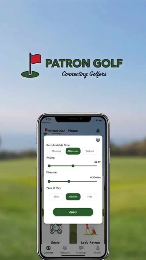 Join the Patron Golf community to find other like-minded golfers so that you can enjoy the game together! Golfers will personalize their profiles based on interests, playstyles, and experience and be able to match with others. Our goal is for our users to experience golf the right way, play as much as possible, and grow their network along the way.