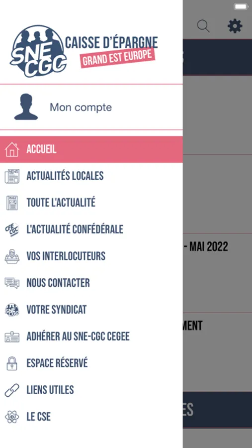 Dans cette application, retrouvez facilement toute l’actualité liée au dialogue social au sein de la Caisse d’Epargne Grand Est Europe ainsi que l’information syndicale nationale et confédérale (CFE-CGC).