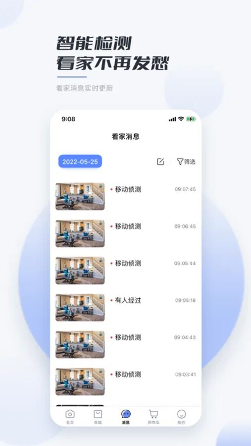 3、智能安防:利用人形检测、运动检测、运动追踪。将异常事件记录成事件,以消息的形式及时推送供用户查看。