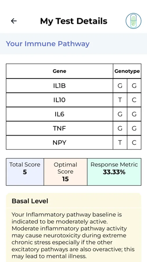 The results are not a diagnosis or medical advice. Clients should not use this app to make changes to their health protocols without referring to their healthcare providers.