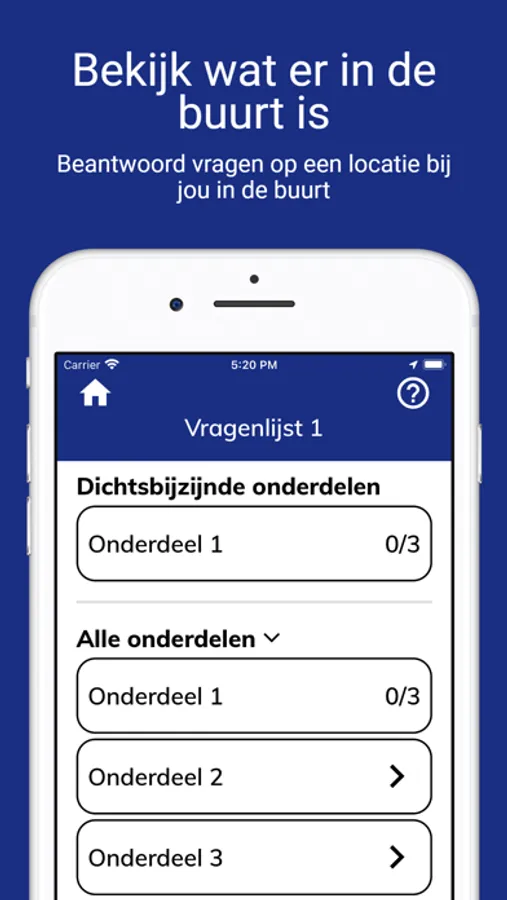 Doormiddel van locatie bepaling wordt u geholpen met het volledig invullen van de vragen.