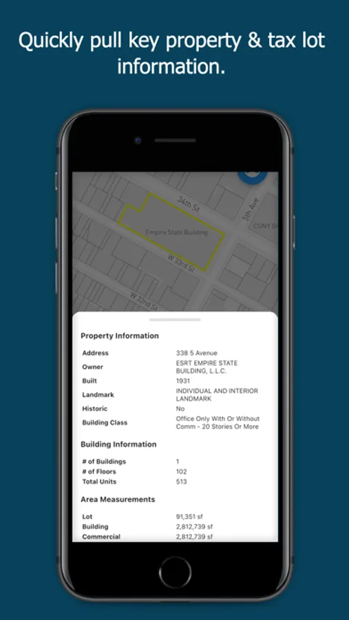 - Property information for every tax lot such as ownership, square footage, FAR, land use, etc.