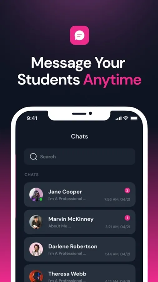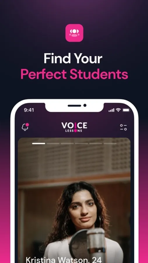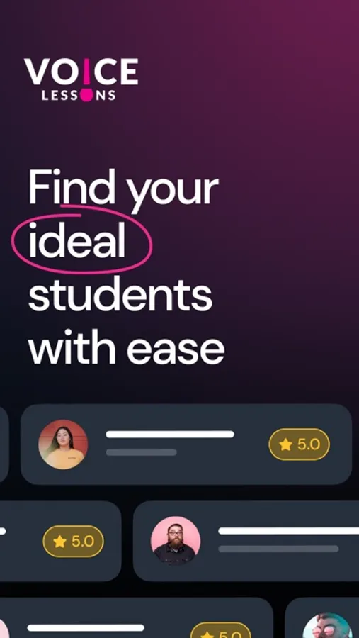 Marketplace app for voice instructors, voice teachers, and vocal coaches. List your profile, upload photos, videos, and studio details so students can find you. Enable push notifications to get real time match notifications. Message with students and grow your online studio.