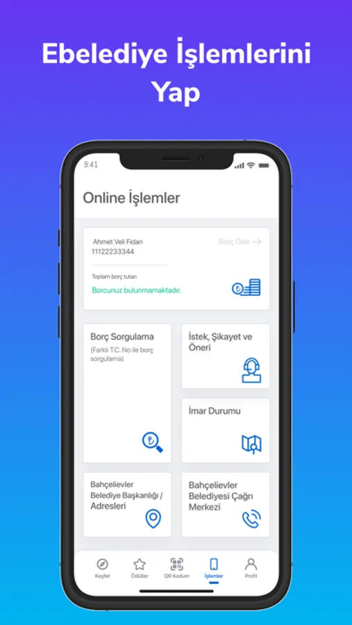 * E-Belediye özelliği ile borçlarını sorgulayıp ödeme yapabilirsin.