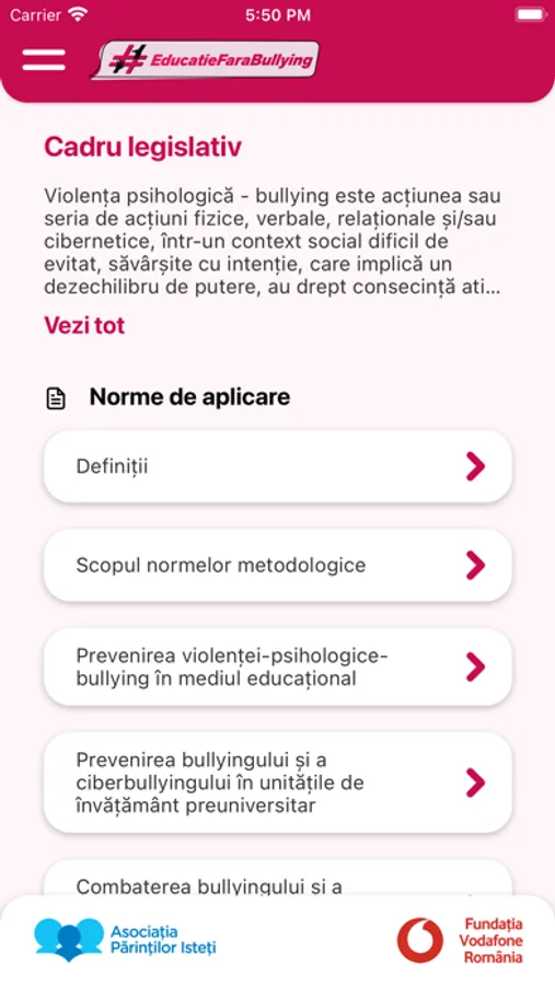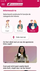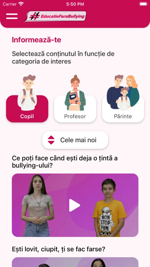 Utilizatorii au la dispoziție un conținut multimedia realizat de specialiști în domeniu, util în educarea și consilierea privind situațiile de bullying și cyberbullying în rândul copiilor școlari și adulților din jurul lor: părinți, profesori, consilieri școlari etc.
