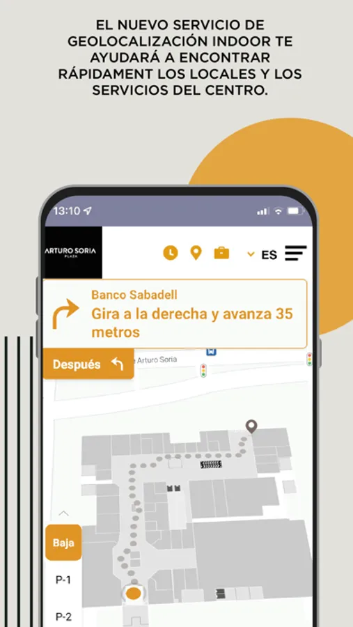 Localiza cualquier de nuestros estableicmientos o servicios con nuestro innovador sistema de geolocalización indoor para que puedas llegar a cualquier sitio de forma rápida y sencilla. Incluye el cálculo de rutas adaptadas para personas como movilidad reducida.