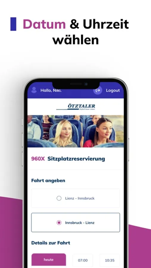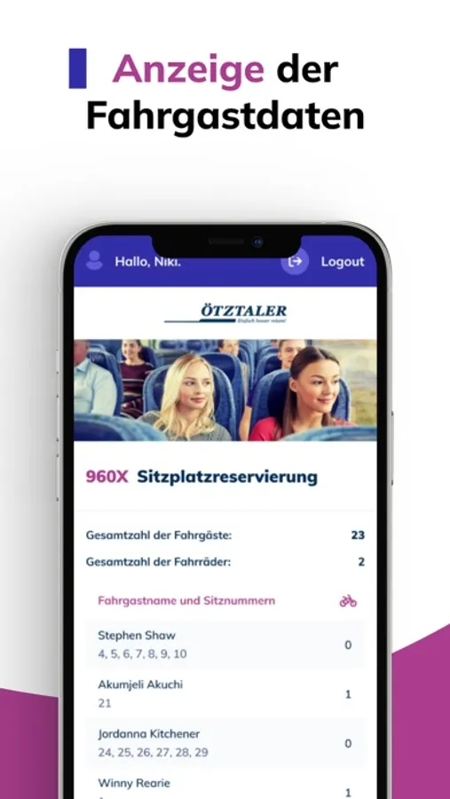 Biete eine Sitzplatzreservierung für deinen Linienverkehr.