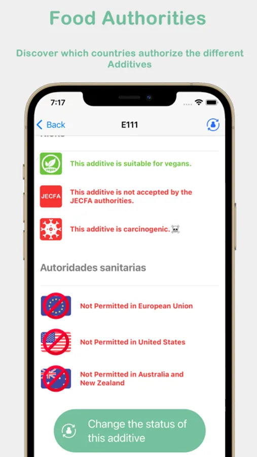 For each additive you will be able to know if an additive is allowed by the authorities of Europe, the United States or Australia.
