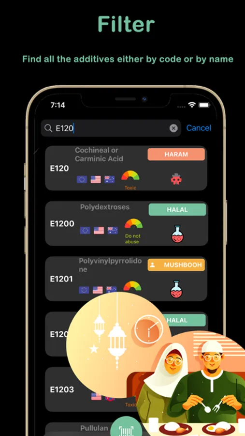 Our aim is to help Muslims not to worry about whether a product contains any Haram additives. Sometimes in supermarket products they contain preservatives, dyes or chemical food additives that can be marked by different names or E-codes (for example, E120 which is Haram since it comes from an insect). It is difficult for a Muslim to know all these names by heart. With Halal Scanner App you will not have to worry as it identifies almost all the names of existing preservatives, colorants or chemical additives and shows them to you in a very simple way.