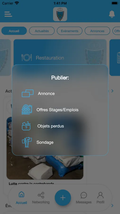 Un module de publication propose des actualités et événement de l’école. Les étudiants peuvent partager des informations (annonces ou autres demandes) à travers un module d’échange entre étudiants.