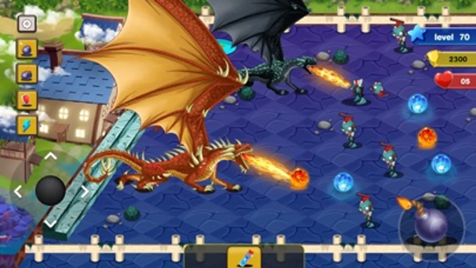 > A Virtual Pad is placed on the left bottom corner that allows the player to control the movement of the Bomber Warrior Character.